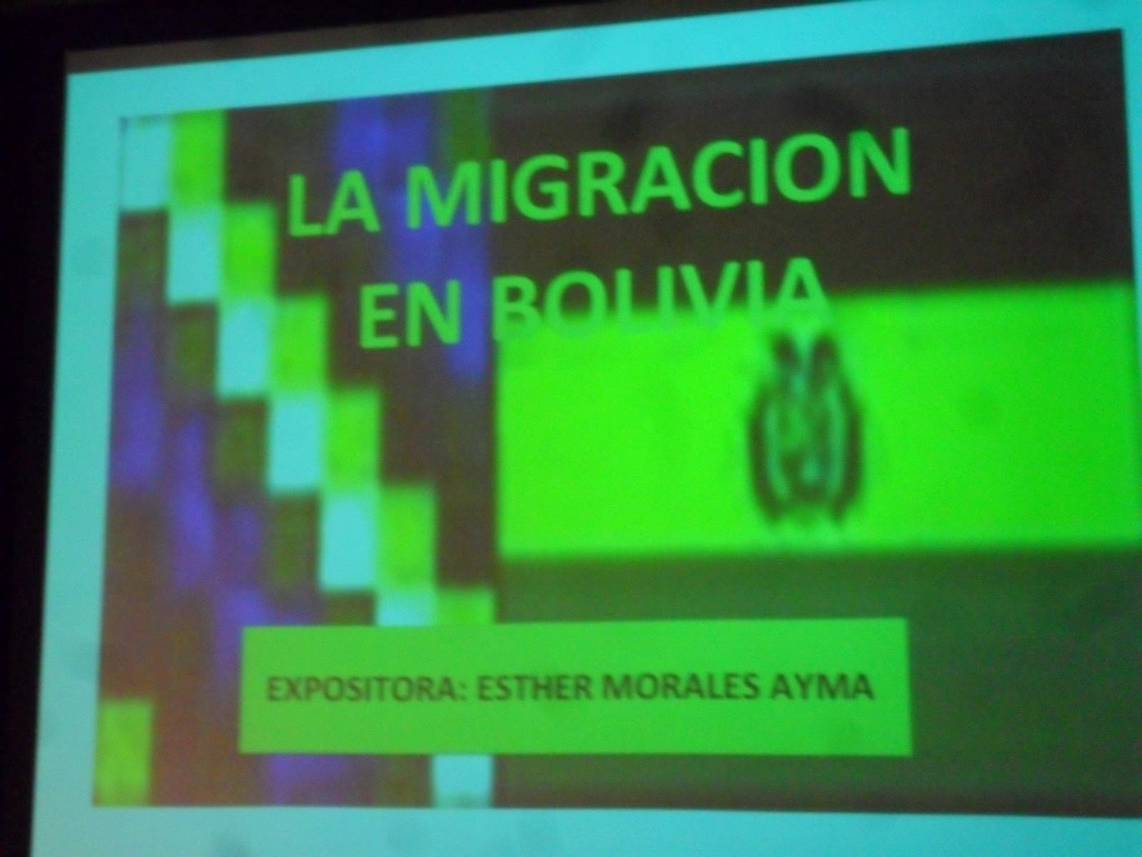 En tercer lugar desearíamos que se construya un enfoque compartido con corresponsabilidad, tanto los países de origen, como los países de acogida y no desde una mirada unilateral. En cuarto lugar un enfoque que no vea al emigrante como amenaza, como riesgo, sino como un vector de desarrollo tanto a sus países de origen, pero también a su país de acogida, nuevamente abro comillas " para referirme a la carta del presidente Morales quien plantea, que los inmigrantes vinieron a Europa vinieron también a contribuir en la prosperidad de los países que la integran posiblemente motivados dice el presidente Morales porque es una región referente de libertades publicas, la inmensa mayoría desarrolla empleos de obras publicas, construcción, en los servicios a las personas y hospitales que no pueden o no quieren ocupar los locales, contribuyen al dinamismo demográfico del continente Europeo a mantener las relación entre activos e inactivos que vuelve posible su generoso sistema de Seguridad Social y dinamizan el mercado interno y la cohesión social, en tanto que para nosotros los estados de America latina, continua en la carta nuestros inmigrantes representan la ayuda al desarrollo que supera la que ofrece cooperación oficial o el total de las inversiones extranjeras en nuestro país reconocemos la importancia, sin embargo a contra partida perdemos a continentes que suman millones de nuestra mano de obra calificada en la que de una manera u otra nuestros estados aunque pobres, han invertido recursos humanos y financieros" y me refiero en la ultima parte de la nota, al articulo 13 de la declaración universal de los Derechos Humanos de 1942, toda persona tiene derecho a circular libremente y a elegir su residencia en el territorio de un estado. La segunda parte que les decía la bilateral la parte mes, en la relación bilateral entre España y Bolivia , la comunidad Boliviana llega masivamente a España entre los años 2004 e inicios del 2007 , dado que desde abril de este año entre el vigor el visado Schengen , requisitos adecuados para el ingreso . Un estudio oficiado por el observatorio de Madrid , calculaba la presencia de 350.000 bolivianos en el año 2007 , establecía que el promedio de edad estaba , oscilaba entre los 25 y 35 años, y que un 52% estaba integrado por mujeres , así mismo que cerca del 70% , tenía condición de irregularidad , estaban indocumentados . Estimaciones que fueron cambiando a lo largo de los años por distintos factores y que por estricta observancia de la normativa vigente en España , mediando el cumplimiento riguroso de los requisitos , caso por caso se incrementó el número de regularizaciones . Así por ejemplo el instituto nacional de estadística de España y Ministerio de trabajo e inmigración , establecen que en el 2008 , se tenía 236.000 empadronados , la cifra más exacta a la residencia total 236.000, de los cuales 68.000 estaban regularizados , con un 55% de población femenina , en tanto que los últimos datos de finales del 2011 establecen que se tiene 192.000 empadronados , 9.000 con doble nacionalidad , 144.000 regularizados a junio del 2011, con un 60% de población femenina . Estos datos nos pueden llevar a hacer muchas deducciones , por ejemplo que la disminución del empadronamiento en más de 30.000 ciudadanos bolivianos , por el fenómeno cíclico, o han salido de España hacía otros estados y seguramente miles y miles han regresado al país por las condiciones de las que nos hablaba don Antony , por otro lado también nos dan a entender , que ya la regularización ha llegado a más del 80% y, que en todo caso los que han retornado en su mayoría son hombres , porque se ha incrementado al 60% la presencia de mujeres aquí con todas las consecuencias que esto implica. Un balance de las relaciones bilaterales realizadas por ambos cancilleres la de España y la de Choquehuanca , hace un año atrás , permitió valorar el proceso de integración de la población boliviana a España , con todos los derechos que les asisten , a lo que contribuyeron los convenios bilaterales suscritos ; por ejemplo el de voto recíproco, por el cual los inmigrantes tal y como ya anteriormente reconocía nuestra constitución en Bolivia, aquí han podido participar de las elecciones municipales . El convenio de seguridad social , el convenio de homologación de licencias de conducir, en fin, ha habido un esfuerzo bilateral valorable para hacer que los inmigrantes bolivianos estén asistidos de todos sus derechos . Ambos países así mismos se comprometen en la última comisión mixta , a contribuir de manera coresponsable para realizar y desarrollar programas de retorno voluntario , los 30.000, 40.000, los que se hace referencia anteriormente, han regresado en su mayoría incluso sin acudir a ninguna medida que ha destinado la organización internacional mundial, o el gobierno español , lo han hecho por medios propios . Finalmente el nivel micro, el de la política migratoria boliviana, aunque Bolivia es un país con una tradición de migración que data de hace 50 años, la política migratoria estaba ausente de la política pública boliviana y es recién a partir del 2006 , que adquiere esa calidad tanto del servicio exterior como de su política interna . Eso ha significado un enorme esfuerzo del estado boliviano por hacer una reforma consular cuantitativa y cualitativa . El 2006, por ejemplo, para 200.000 bolivianos había un consulado en la ciudad de Madrid , hoy en día hay cinco y se proyecta algunos más para tener asistidos a todos, con el servicio consular que requiere, por otro lado, ha desarrollado esfuerzos importantes para automatizar, para hacer los trámites más explícitos, de manera que todos tengan la documentación exigida para su regularización . Y termino con lo siguiente, créannos, que el estado boliviano está haciendo muchísimos esfuerzos, desarrollando cambios profundos a nivel político, económico y social. A trav